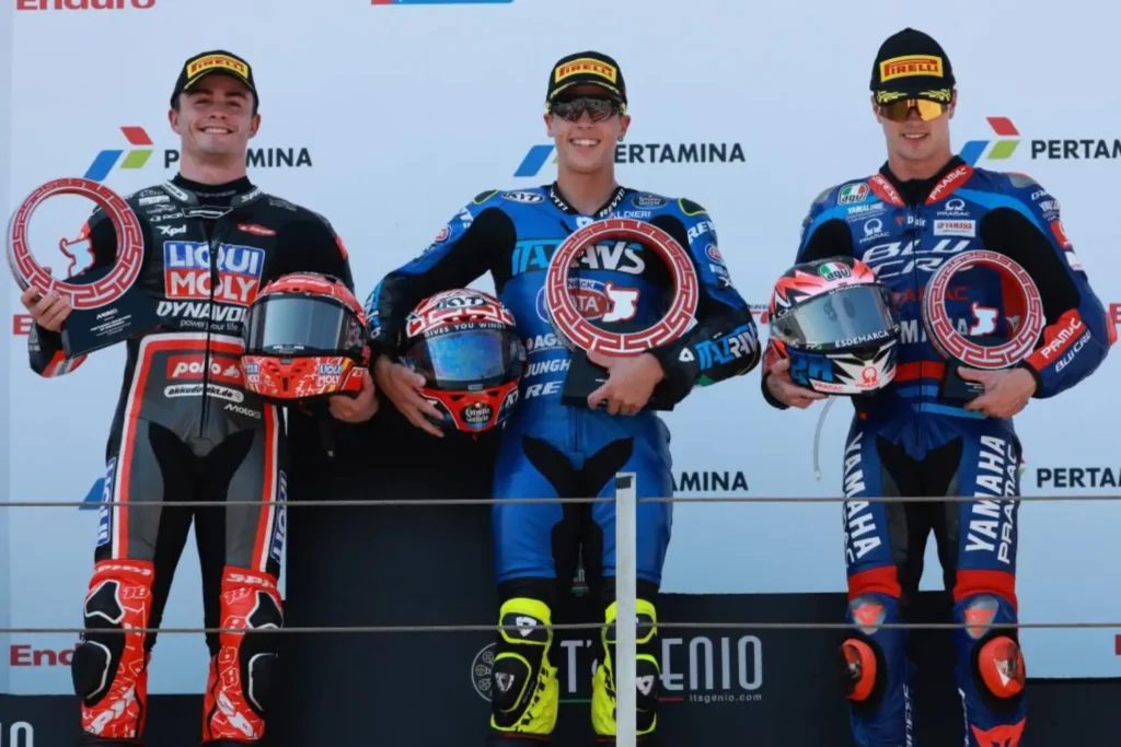 Diogo Moreira, quien partió desde la pole position, comenzó la carrera con una estrategia clara. Aunque cedió la primera posición a Izan Guevara en la salida, rápidamente recuperó el control y se mantuvo en la cabeza hasta cruzar la meta. La carrera fue intensa, con varios pilotos luchando por posiciones clave, pero el verdadero drama se desató horas después de la competencia.